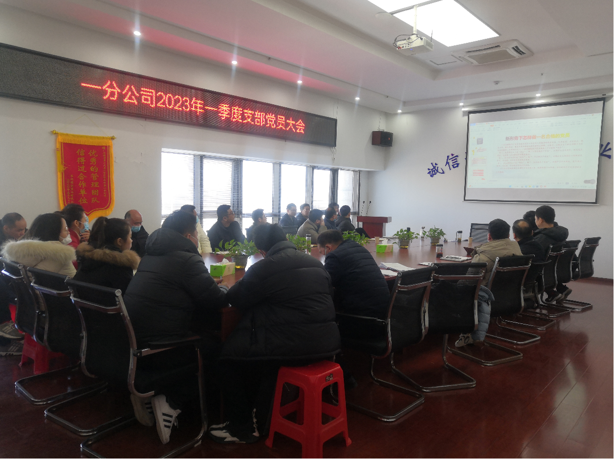 1月28日上午,第一分公司在會(huì)議室召開(kāi)2023年一季度支部黨員大會(huì)。會(huì)議由支部書(shū)記倪海霞主持,分公司全體黨員參會(huì)。
