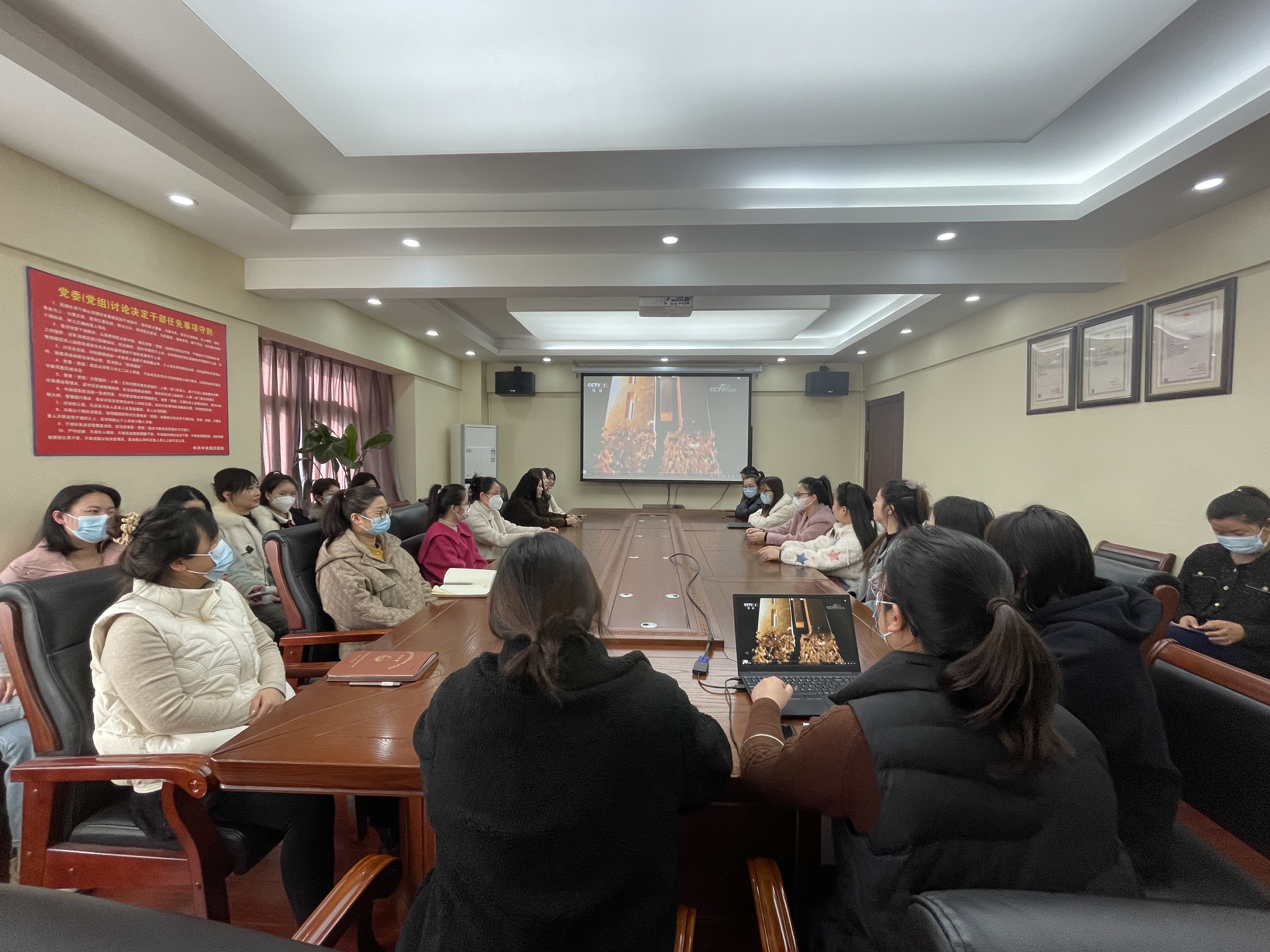 3月7日下午,機關工會組織機關職工觀看“奮進新征程 巾幗綻芬芳”巾幗勞模走進清華大學活動直播。
