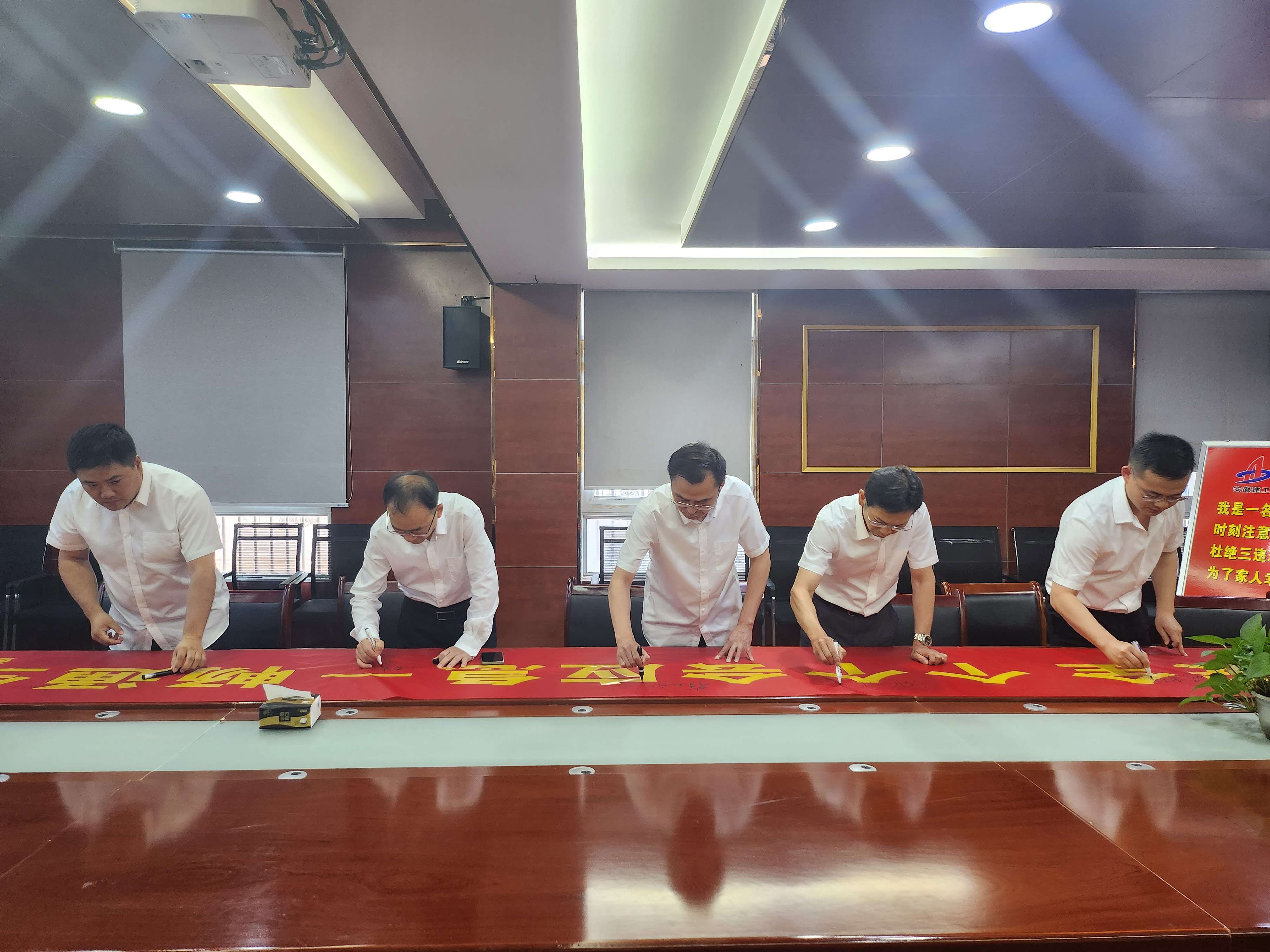 “我是一名安全建工人,我鄭重宣誓:時(shí)刻注意安全,遵守安全法規(guī);履行安全職責(zé),提高安全技能;杜絕三違現(xiàn)象,保證四不傷害;強(qiáng)化紅線意識(shí),促進(jìn)安全發(fā)展;為了家人幸福、企業(yè)發(fā)展,誓做建工安全人!”伴隨著一陣陣響亮的宣誓聲,聯(lián)合簽名、觀看安全生產(chǎn)月主題宣傳片及公益廣告等,第一分公司2024年“安全生產(chǎn)月”正式拉開(kāi)帷幕。
