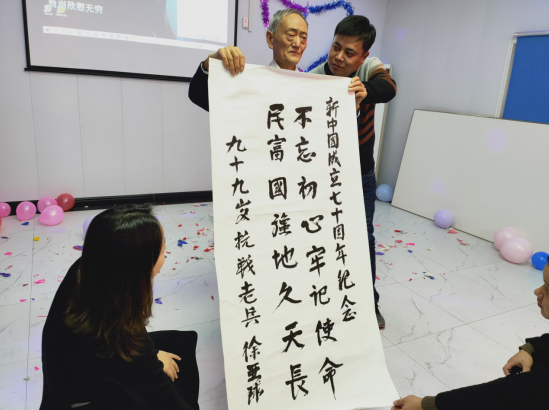 31日下午,項目職工包起一盤盤熱氣騰騰的餃子,歡迎前來參加晚會的嘉賓。晚7點半,聯歡會正式拉開帷幕。首先,支部書記董建民致辭,對全體干部職工一年來為項目的發展所做出的貢獻和努力表示肯定和感謝,并向廣大職工及其家屬送上了新年的美好祝福。晚會過程中,由項目部女員工編排的舞蹈《浪漫櫻花》令人贊嘆,機關員工李丹然的魔術表演《新貴妃醉酒》讓人驚喜連連,由安徽省新四軍歷史研究會淮海委員會征修、周芳琴聯袂出演的小品《賣菜》令人捧腹大笑,《成都》、《一生所愛》、《隱形的翅膀》等歌曲串燒給大家獻上了一場視聽盛宴,朗誦《回家過年》營造出濃濃的節日氛圍。聯歡現場,背夾氣球、比劃猜謎等游戲更是掀起一波又一波的高潮。接近尾聲時,張振山會長帶來了安徽省新四軍歷史研究會淮海委員會原會長徐亞球的一副珍貴的書法,并祝愿安徽二建公司蓬勃發展、再創輝煌!