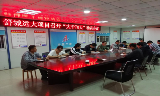 10日晚,為了響應(yīng)公司組織勞動競賽的號召,激發(fā)項目上下的生產(chǎn)熱情,達(dá)到并超越既定的生產(chǎn)目標(biāo),舒城遠(yuǎn)大項目部全體管理人員在會議室召開“大干70天”勞動競賽動員會議。