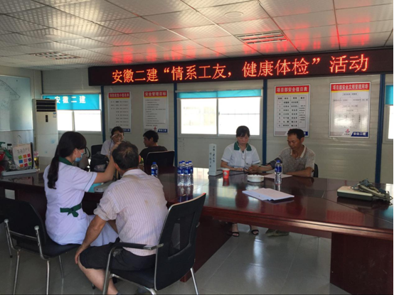 入伏后,持續的高溫晴熱天氣不僅炙烤著項目施工工地,也考驗著廣大一線職工的身體健康,本著“以人為本”的理念和“預防為主,安全第一”的要求,一分公司舒城遠大中央公園項目部組織開展了對班組工人進行全員體檢。