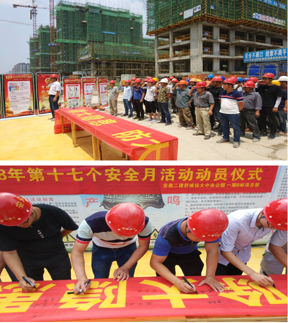 6月1日,舒城遠(yuǎn)大中央公園一期B標(biāo)段項目部響應(yīng)公司號召,組織開展2018年第十七個安全生產(chǎn)月活動,項目全體管理人員及勞務(wù)班組成員參加。