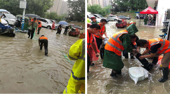 7月18日,合肥遭受77年一遇單日最大降雨。藍天公寓和大興鎮興泰苑出現內澇,情況緊急,人民群眾生命財產安全遭受威脅,汛情就是戰斗令,二分公司接到指令,馬上組建30余人的抗洪突擊隊,緊急調運大功率水泵2臺,配電箱2個,80米電線電纜,300米水管等防汛物資,20分鐘極速趕到抗洪前線。現場有的架設水泵、有的鋪設電纜、有的配合抽水排澇,分工明確、爭分奪秒。經過數小時的緊急救援,至凌晨,災情得到有效控制。奮戰了8個小時的志愿者們才撤出前線。