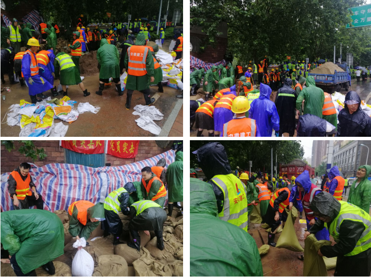 7月19日,受連續強降雨影響,南淝河水位迅速上漲,防汛形勢非常嚴峻。災情就是命令,容不得絲毫猶豫,公司黨委指令所屬第一、二、三、四、五分公司迅速行動,調集抗洪志愿者280人次,調運編織袋15000個、運輸車輛7臺、黃沙130方、水泵9臺、鐵鍬100把等抗洪物資,迅速投入到抗洪一線。公司主要領導親臨一線指揮調度。