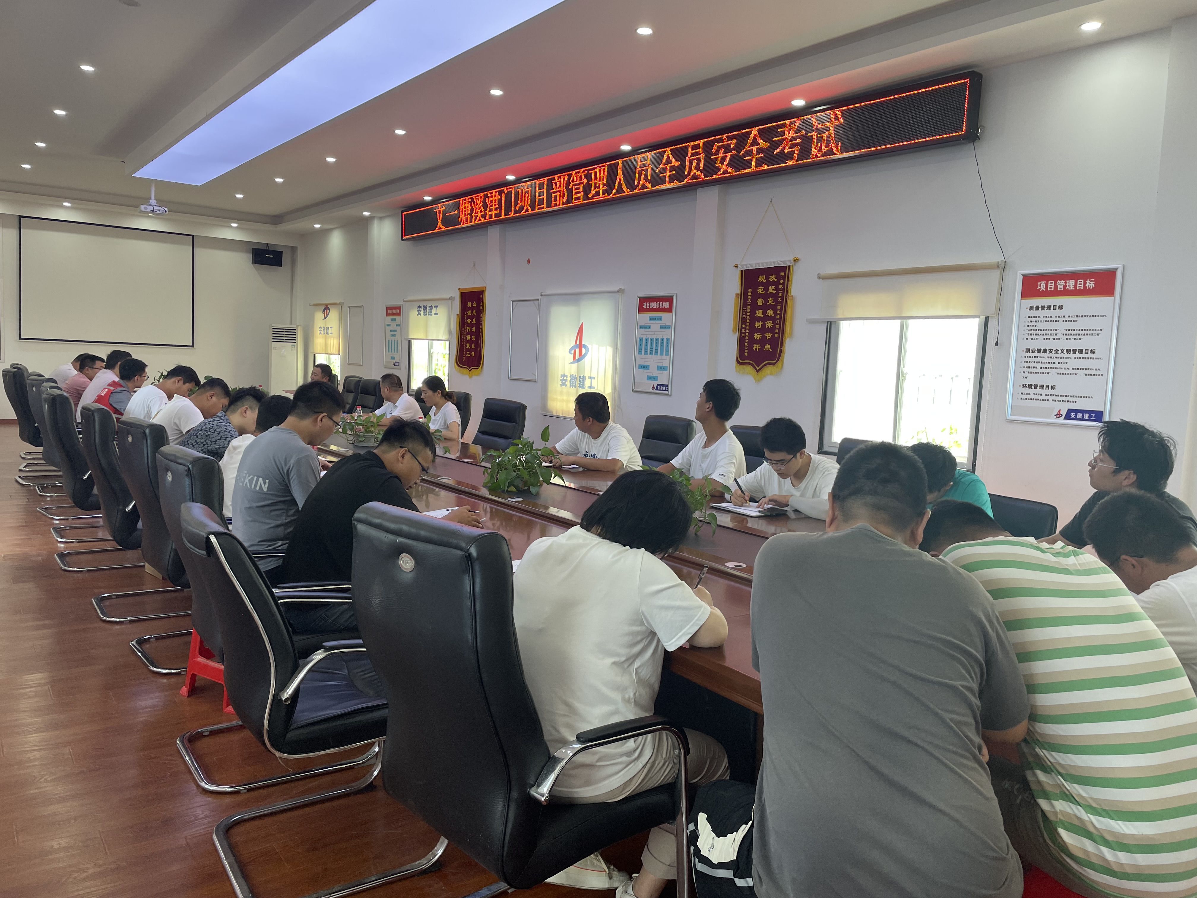 檢查組首先對施工現(xiàn)場機械設備運行情況、配電系統(tǒng)、安全防護系統(tǒng)等重點區(qū)域及項目現(xiàn)場茶水供應情況進行檢查,抽查項目勞保用品、防暑降溫藥品發(fā)放情況及特種作業(yè)人員持證情況,隨后就“百日行動”、“高處作業(yè)專項行動”對項目全體管理人員進行了宣傳教育培訓并組織安全知識考試。